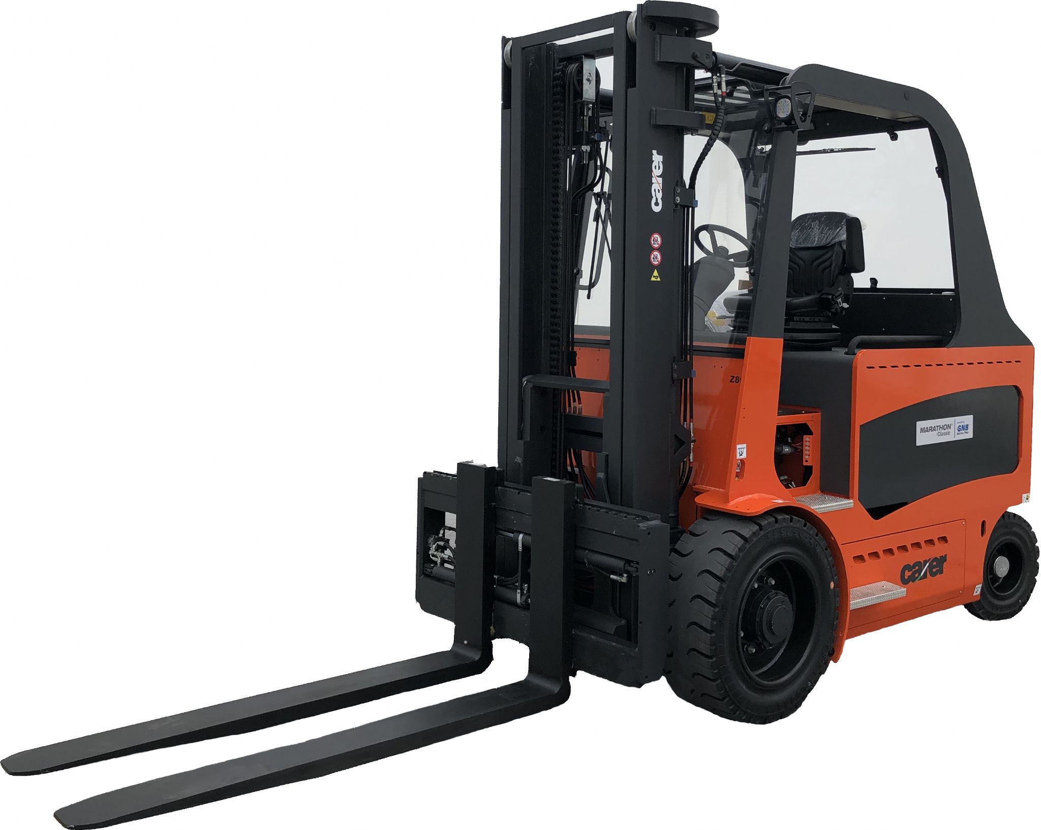 Die Wechselstrom-Elektromotoren sind für hohe Beanspruchung ausgelegt und ausgelegt. Das elektrische Bremsen verfügt über eine Energierückgewinnung, wenn das Bremspedal losgelassen und die Fahrtrichtung umgekehrt wird.
